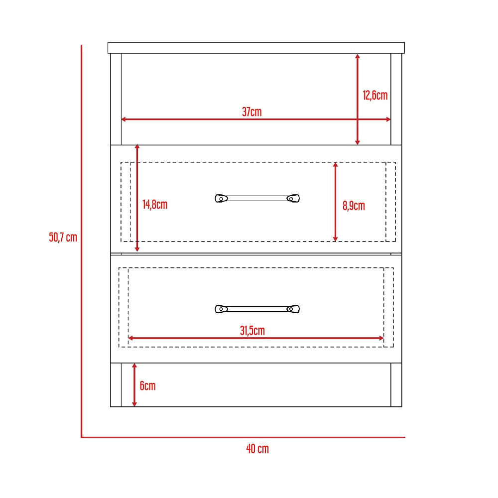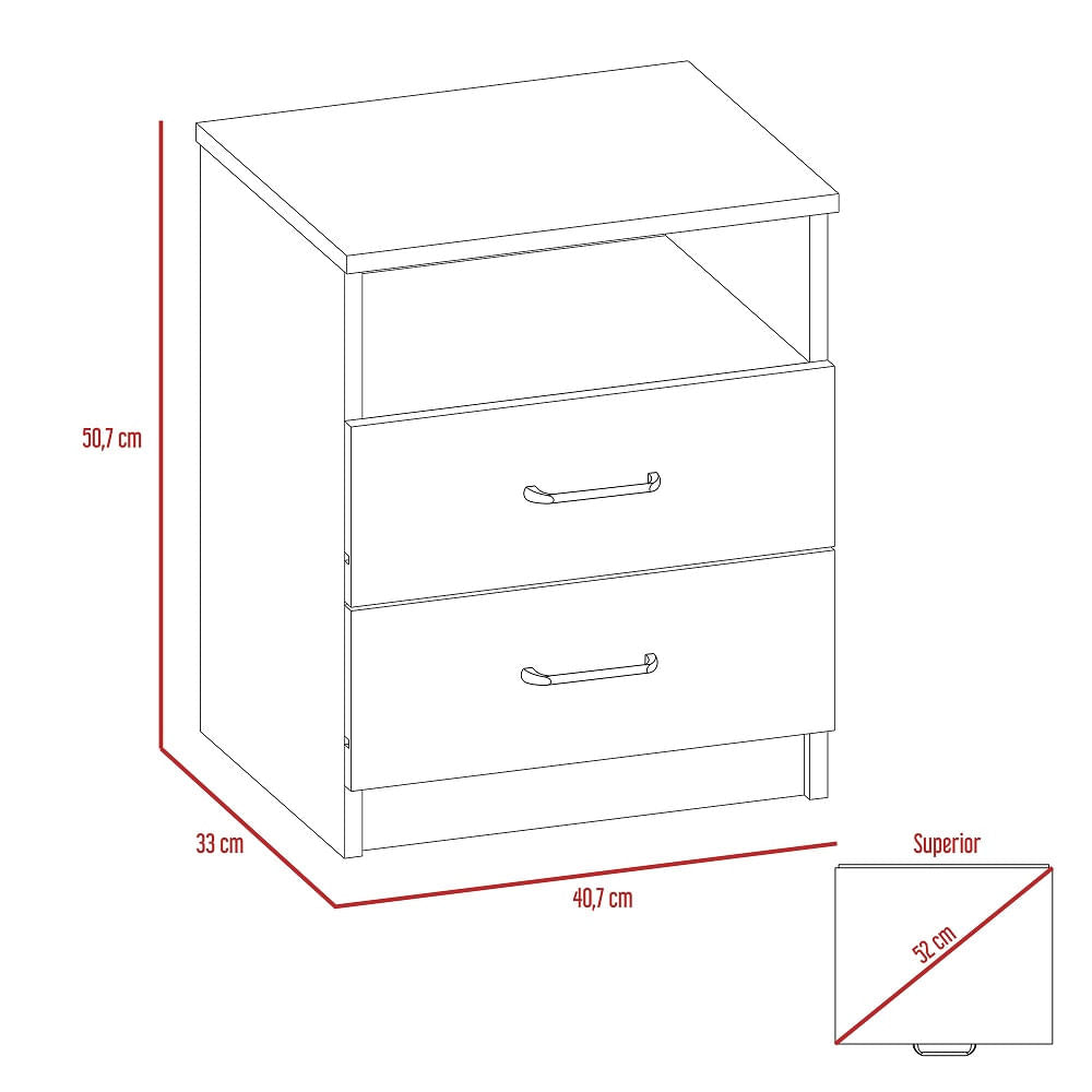Diseño práctico y funcional, espacio para colocar objetos decorativos como lámparas, etc. Dos cajones deslizables con correderas metálicas. Manija Metálica semi-arco. Fácil armado o instalaciónPosee unas medidas en CM De: Alto:50,7Ancho:40,7Fondo: 33 y un peso en KG de: 23,42 NO INCLUYE ARMADO, Hecho de madera aglomerada, limpiar en seco, no productos abrasivos, ni humedad alta , La foto de este producto ha sido ambientada, por lo cual no incluye ningún adorno, ni accesorios, ni piezas adicionales ni ningún otro elemento que lo acompañan. El color presentado en la fotografía es una aproximación al color real.