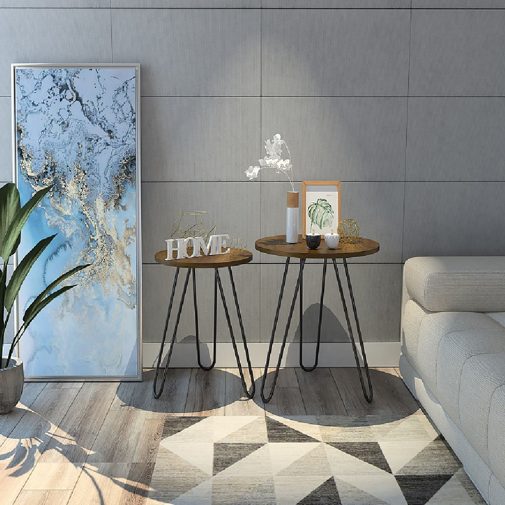 Patas metálicas, para ubicar objetos decorativos. Posee medidas en CM de: Alto: 59,5 y 54,5 Ancho: 50 - y 40 Fondo: 50 y 40 y un peso en KG de : 7,4 NO INCLUYE ARMADO, Hecho de madera aglomerada, limpiar en seco, no productos abrasivos, ni humedad alta , La foto de este producto ha sido ambientada, por lo cual no incluye ningún adorno, ni accesorios, ni piezas adicionales ni ningún otro elemento que lo acompañan. El color presentado en la fotografía es una aproximación al color real.