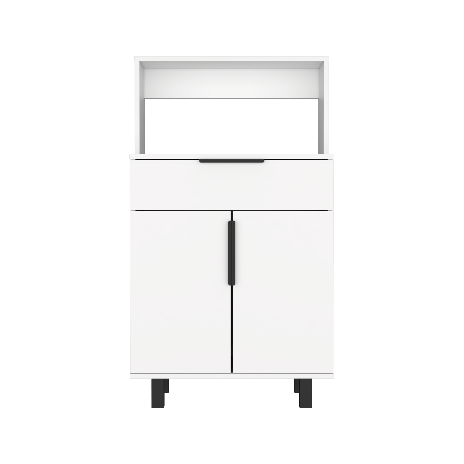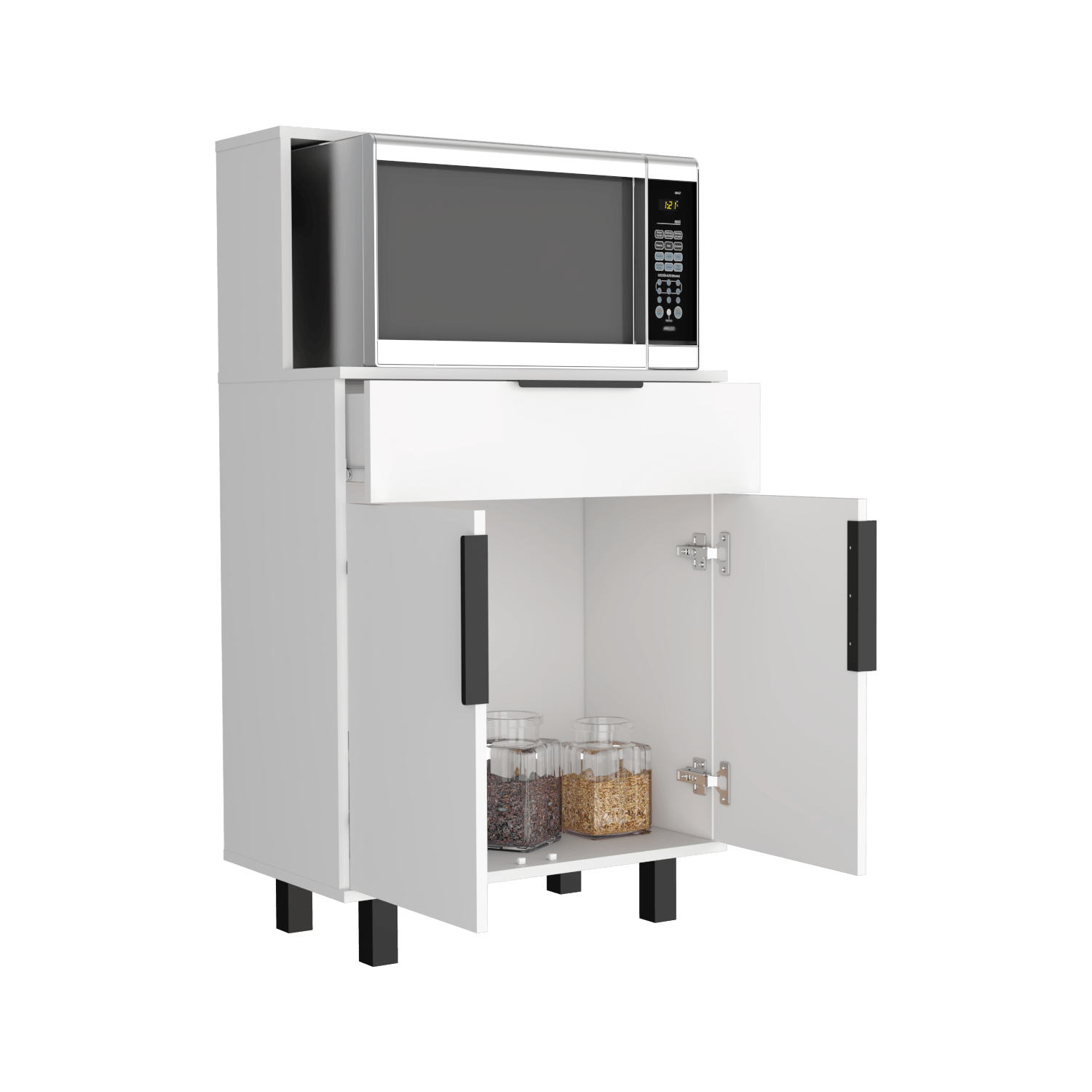 Modulo microondas con espacios para almacenamiento, patas y manijas en acero, diseño moderno, facil armado con medidas de: ALTO 112 ANCHO 63,1 FONDO 36