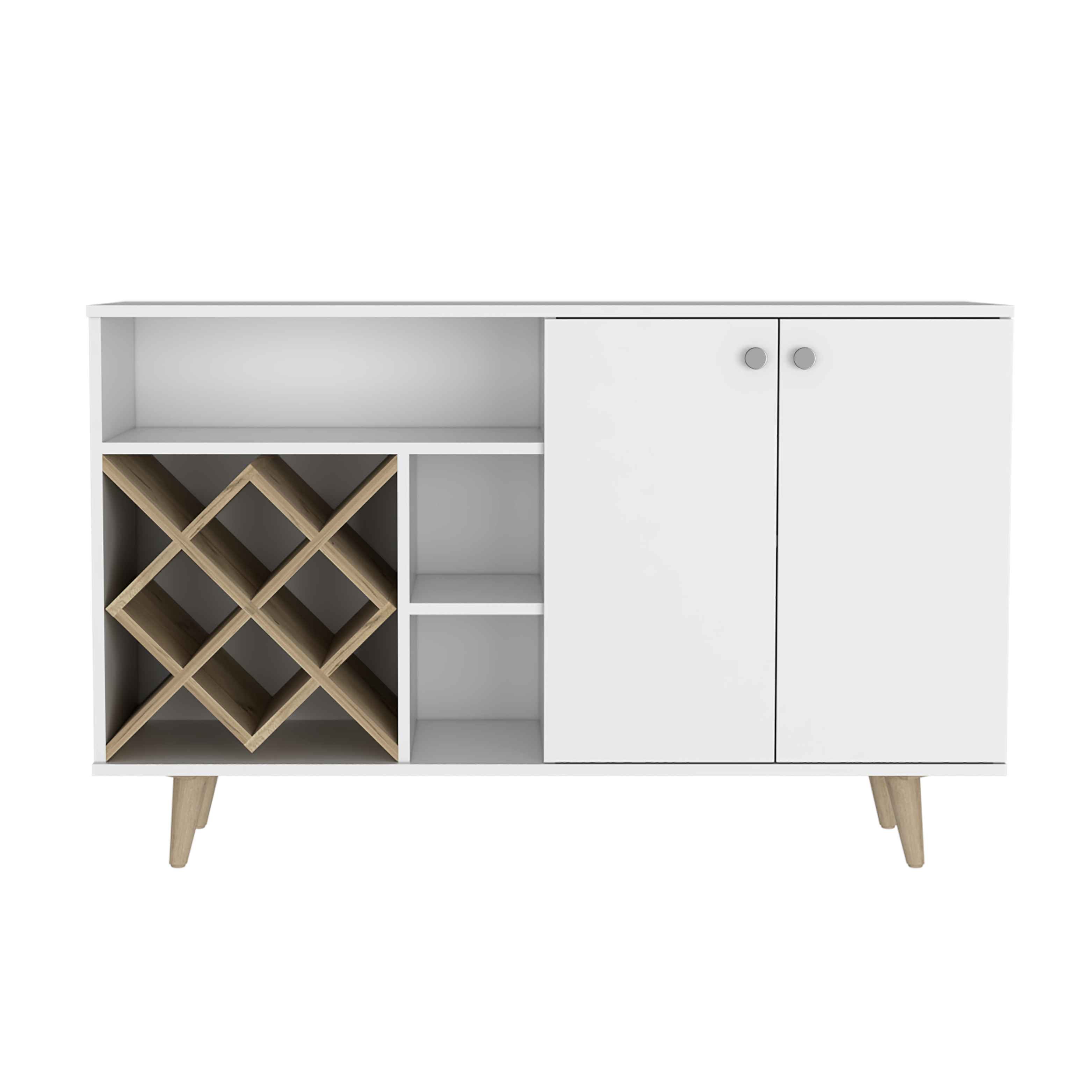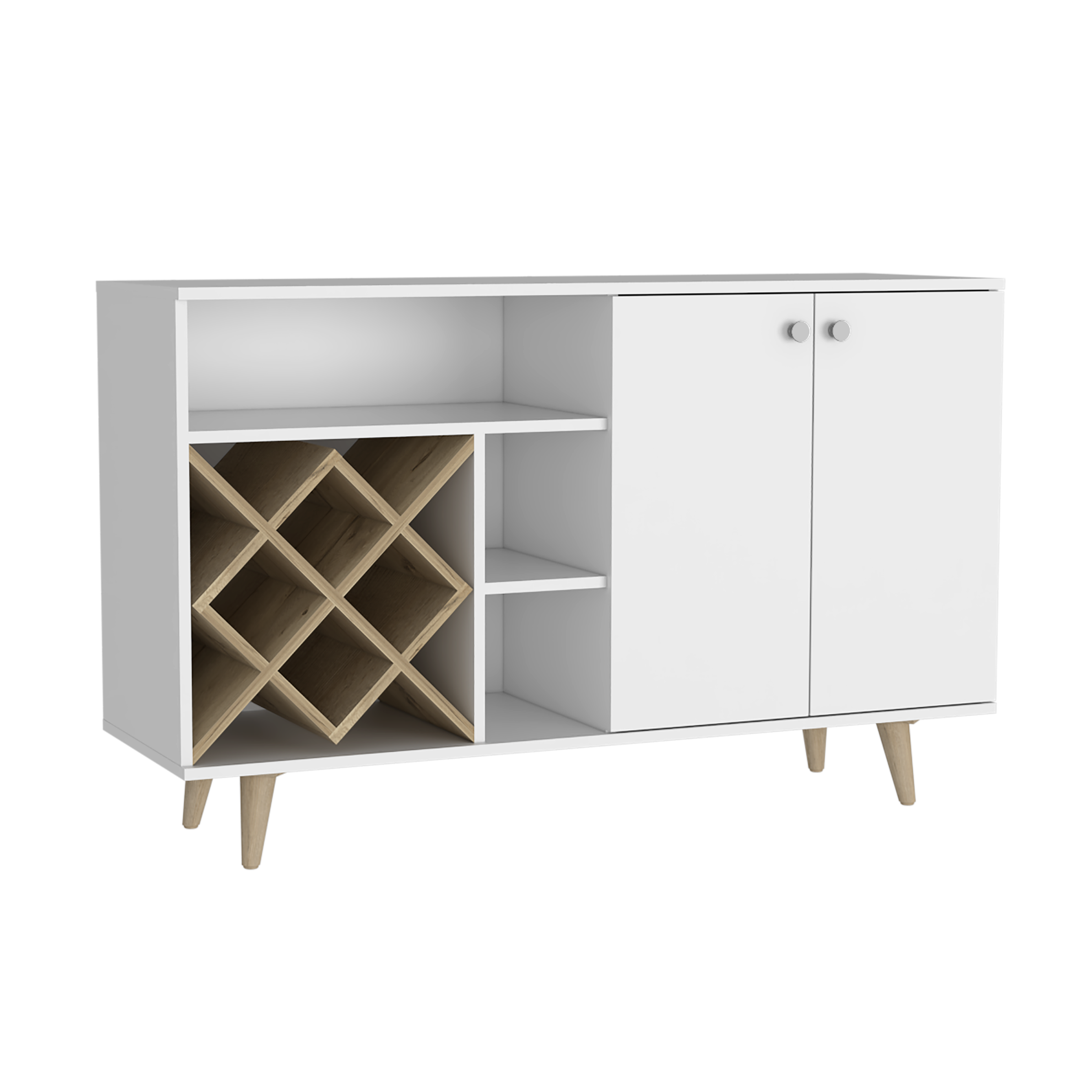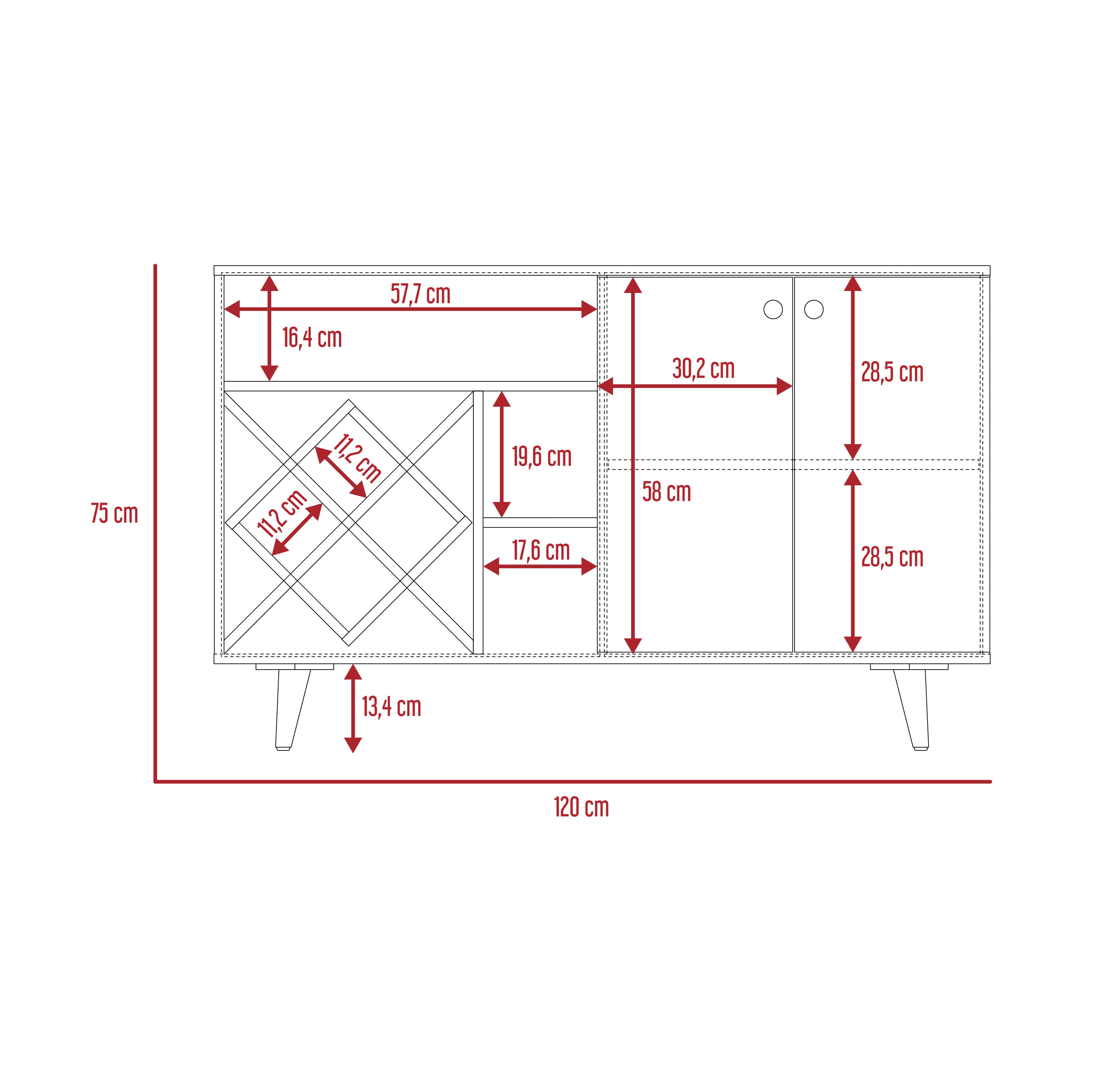 Mueble bar con puertas abatibles, boton metalico, espacio para guardar botellas de vino y con patas metalcias con medidas de: ANCHO 120 ALTO 75 PROFUNDO 38