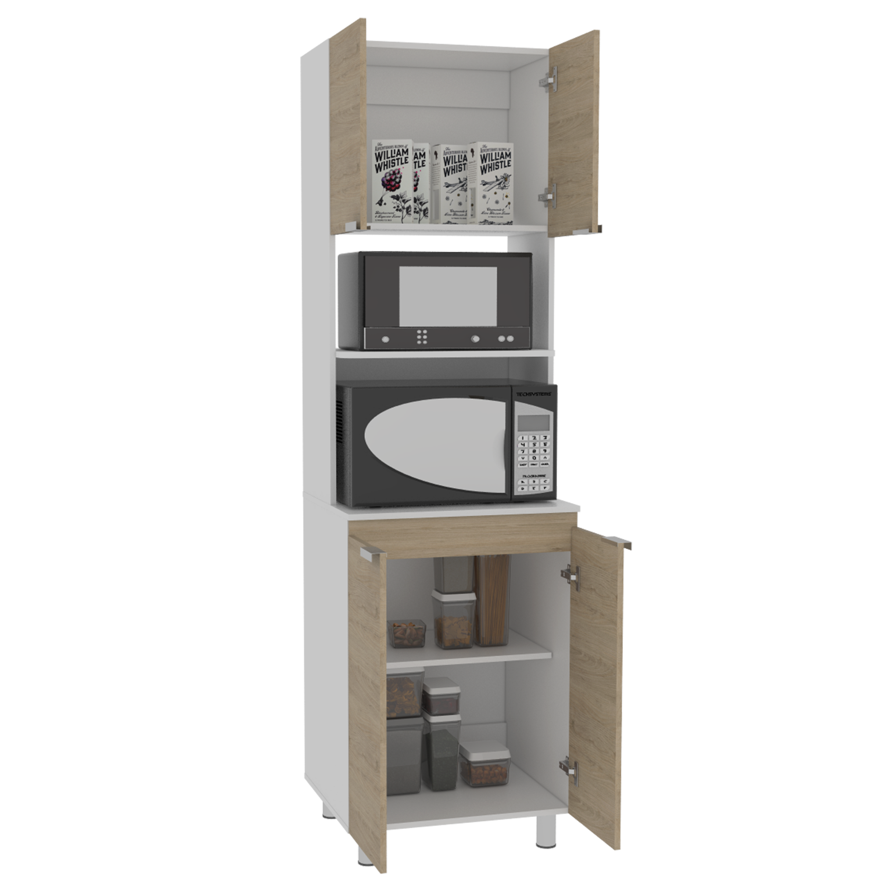 Mueble para Microondas con manijas metalicas, amplios espacios para almacenamiento, torre alacena, cuatro puertas con medidas de: ALTO 205 ANCHO 60 FONDO 51,3