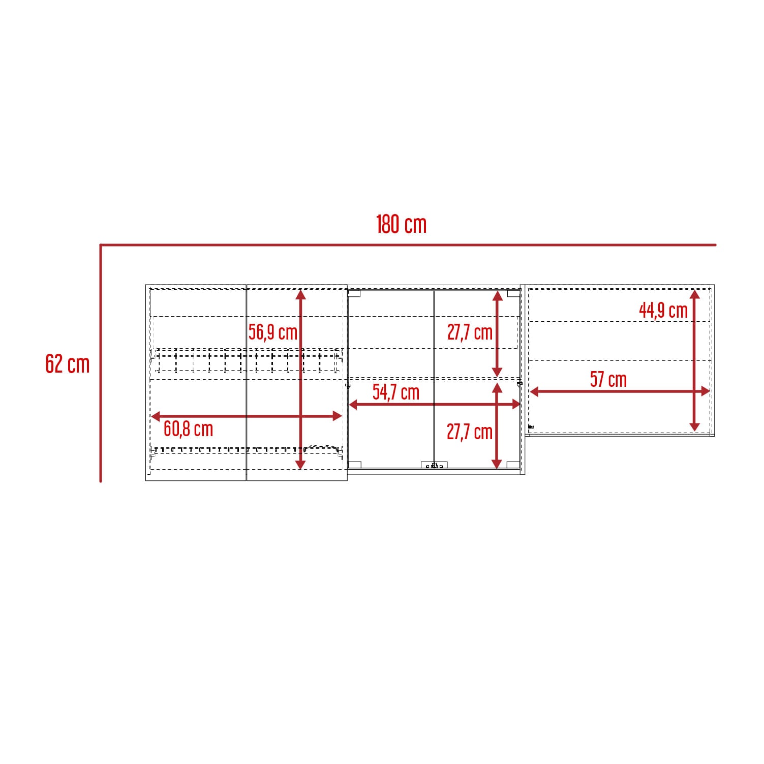 Mueble superior de cocina incluye locero, tres puertas abatibles, dos peurtas de vidrio con medidas de: ANCHO 180 ALTO 62 PROFUNDO 33,5
