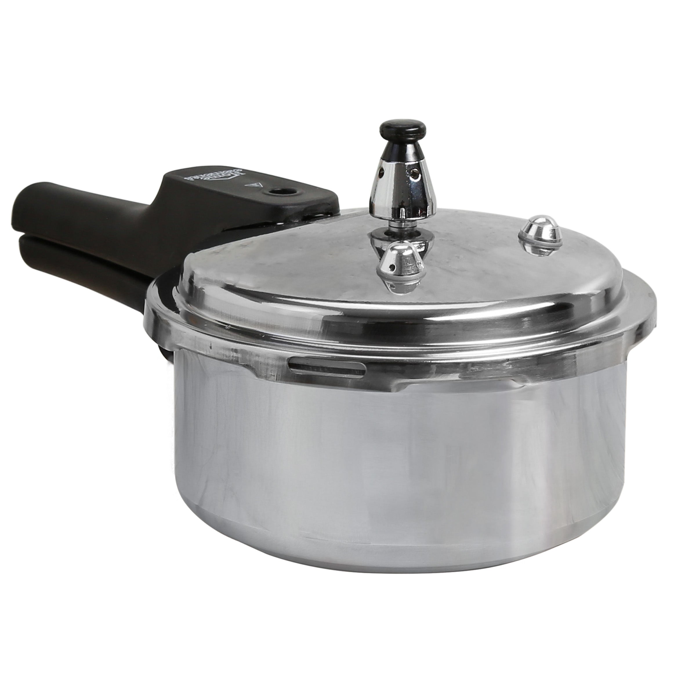Olla a presión capacidad de 2 litros, presión nominal de 70 Kpa, cuerpo en aluminio y tapa en acero Inoxidable, cierre externo, apta para estufas eléctricas y a gas, versátil y fácil de usar.