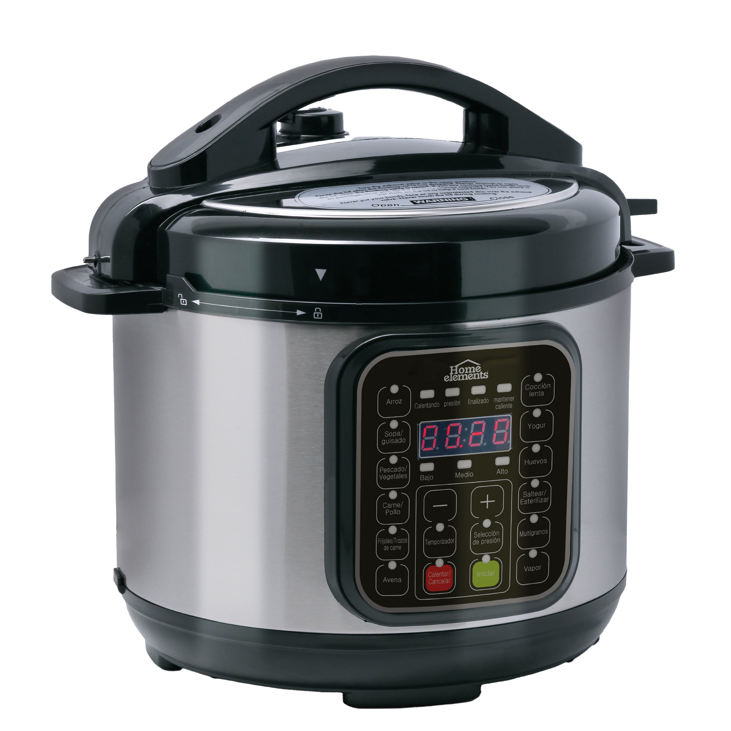 Olla eléctrica multifuncional con 12 tipos de funciones programables, como cocción lenta, presión alta, preparas carne/pollo, presión baja, pescado/vegetales, arroz, tres sistemas de seguridad, pin de seguridad, sistema de liberador de vapor, rejilla antibloqueo.