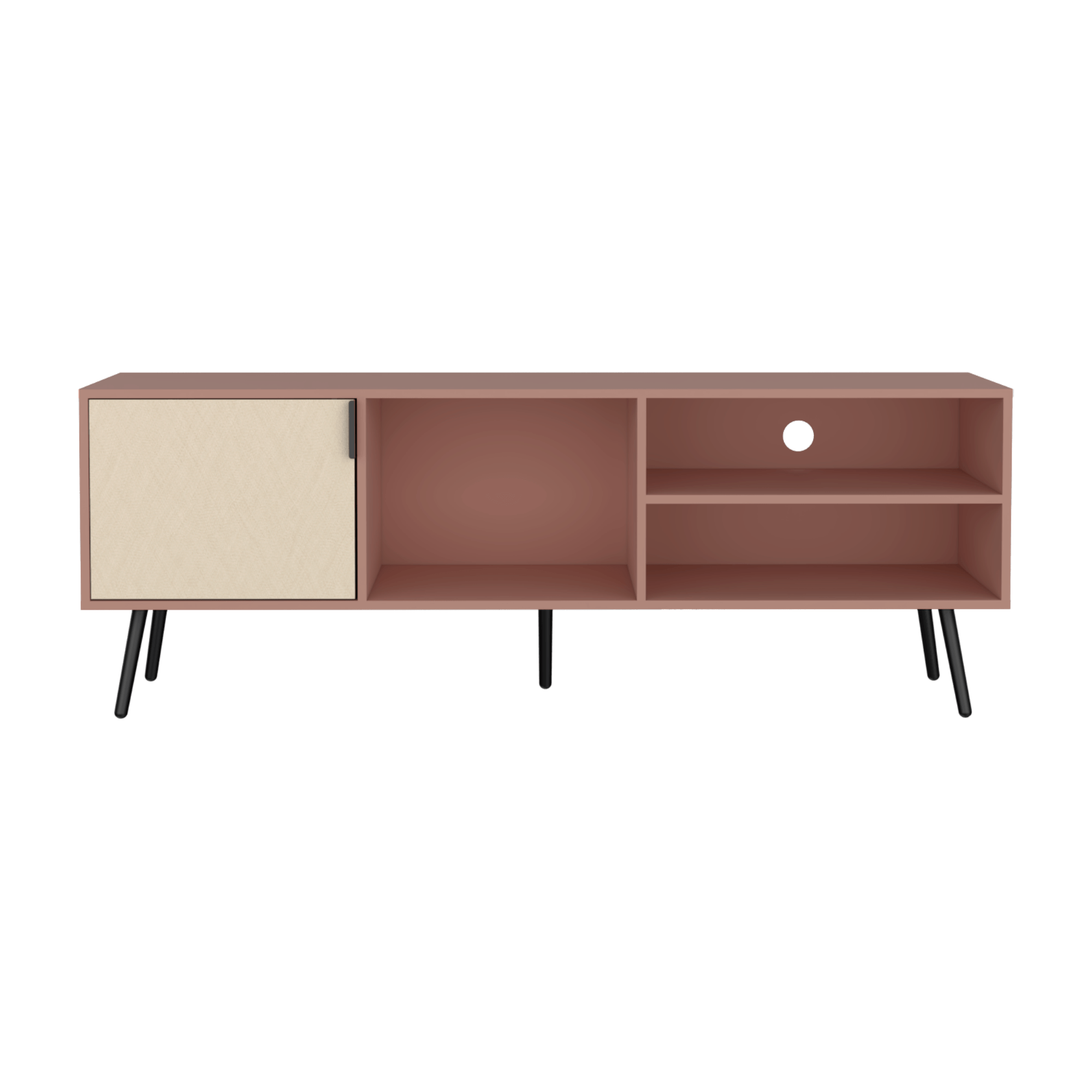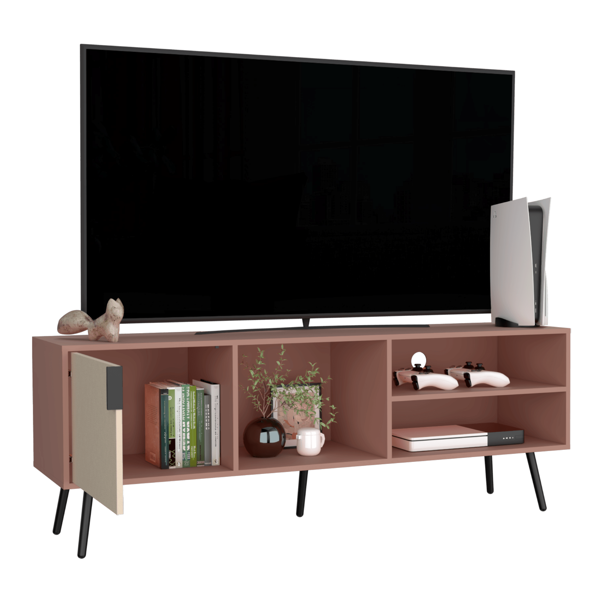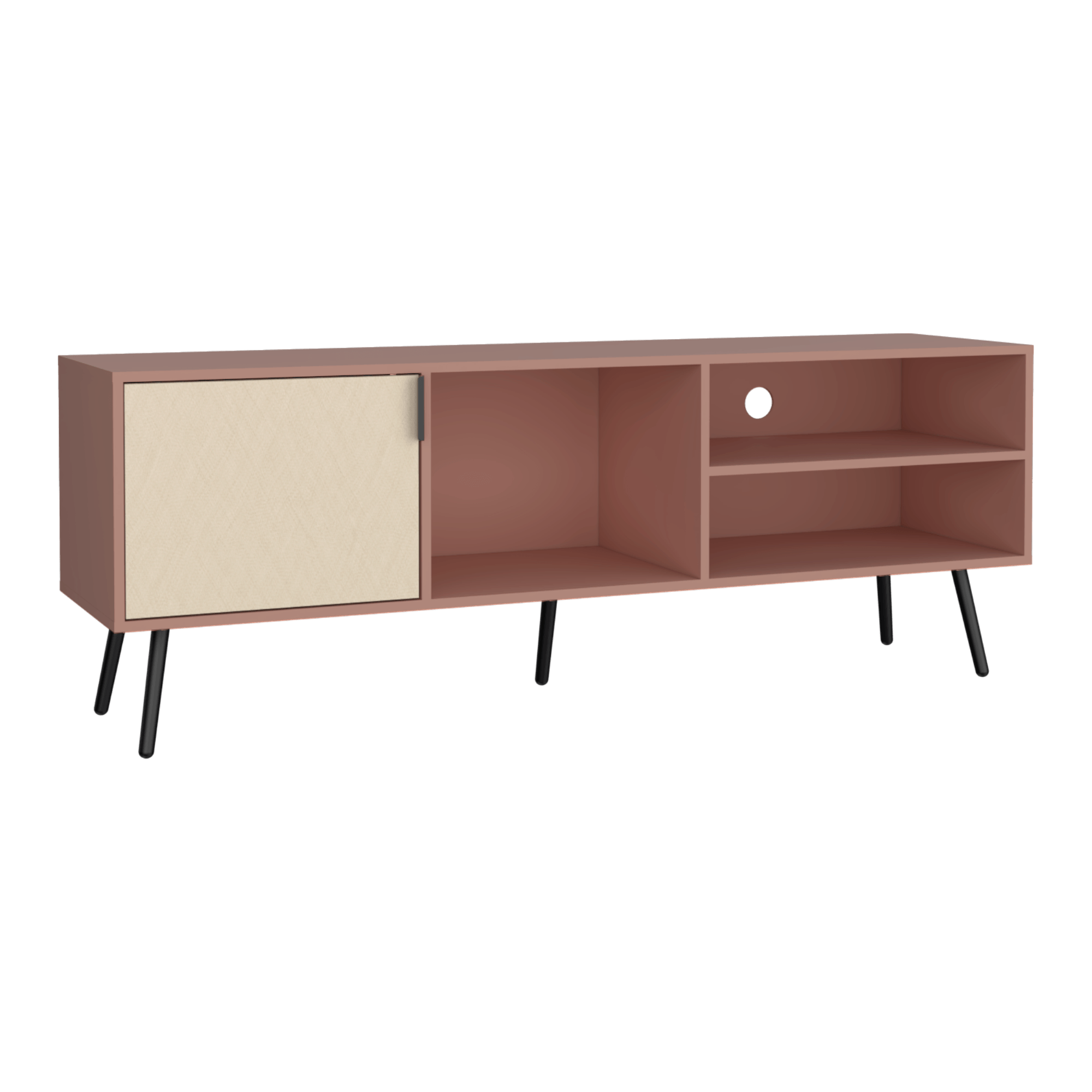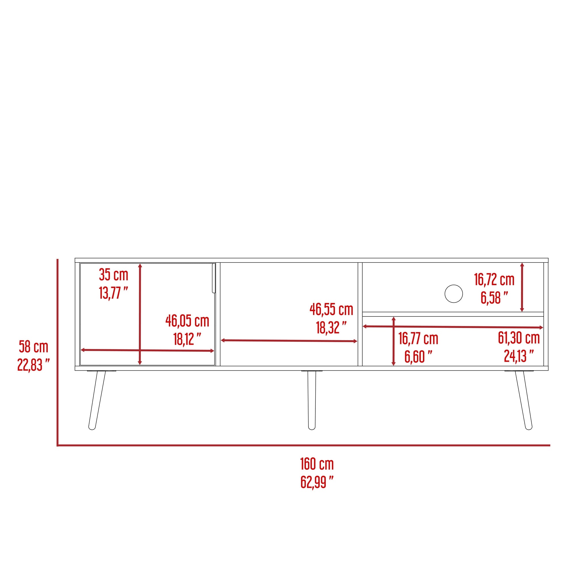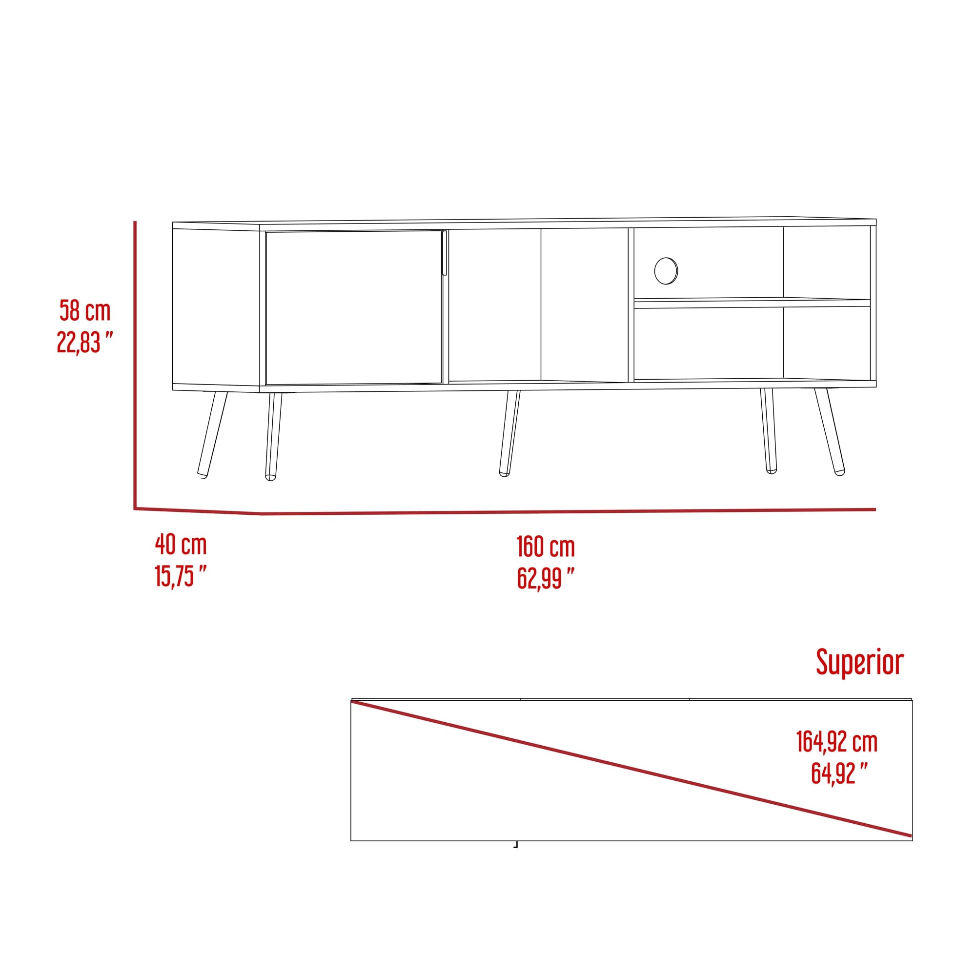 Rack para TV de 65'' maximo, con una puerta abatible, diseño moderno, facil armado, patas metalicas con medidas de: ALTO 58 ANCHO 160 FONDO 40