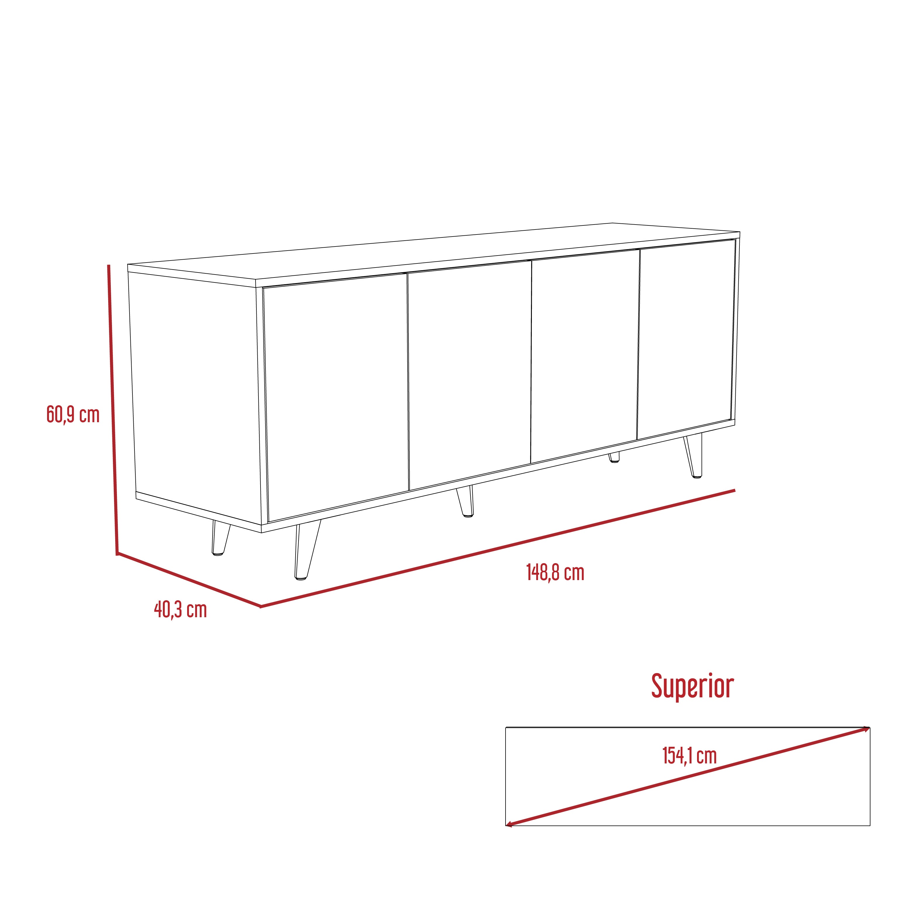 Rack para TV de 65'' maximo, amplios espacios para ubicar dispositivos de entretenimiento, cuatro puertas con sistema push to open con medidas de: ANCHO 148,8 ALTO 60.9 PROFUNDO 40,3
