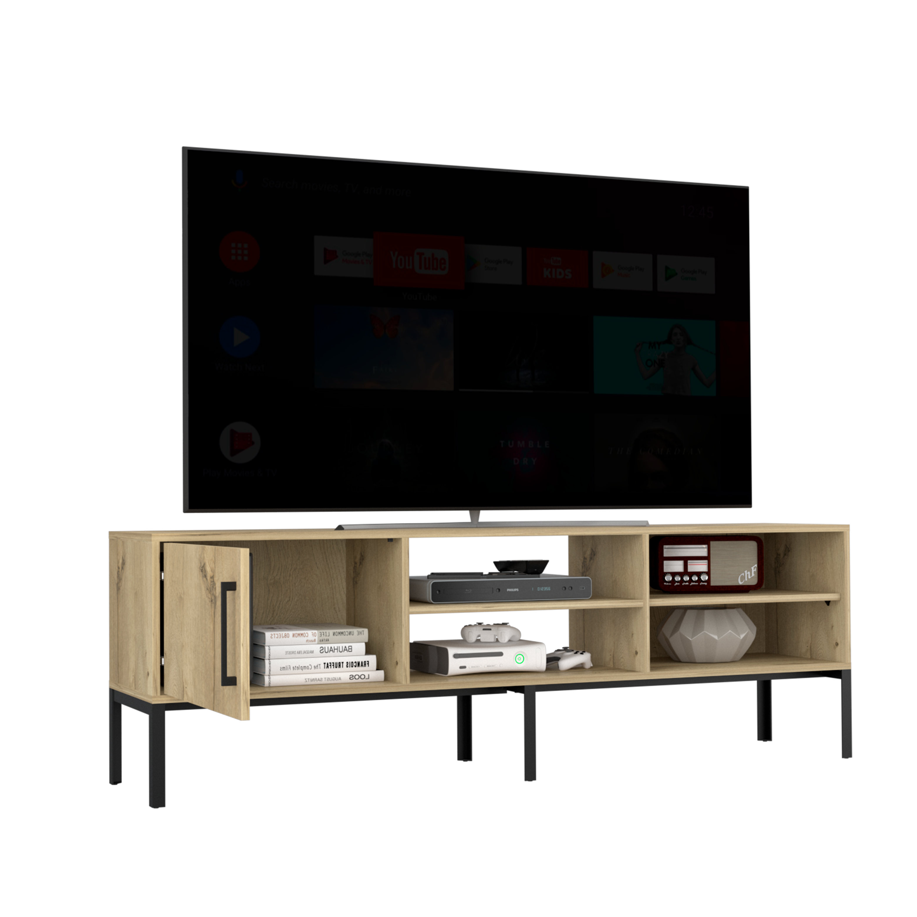 Rack con diseño moderno, una puerta abatible, TV de 65'' maximo, estructura metalica con medidas de: ANCHO 160 ALTO 52,4 PROFUNDO 35