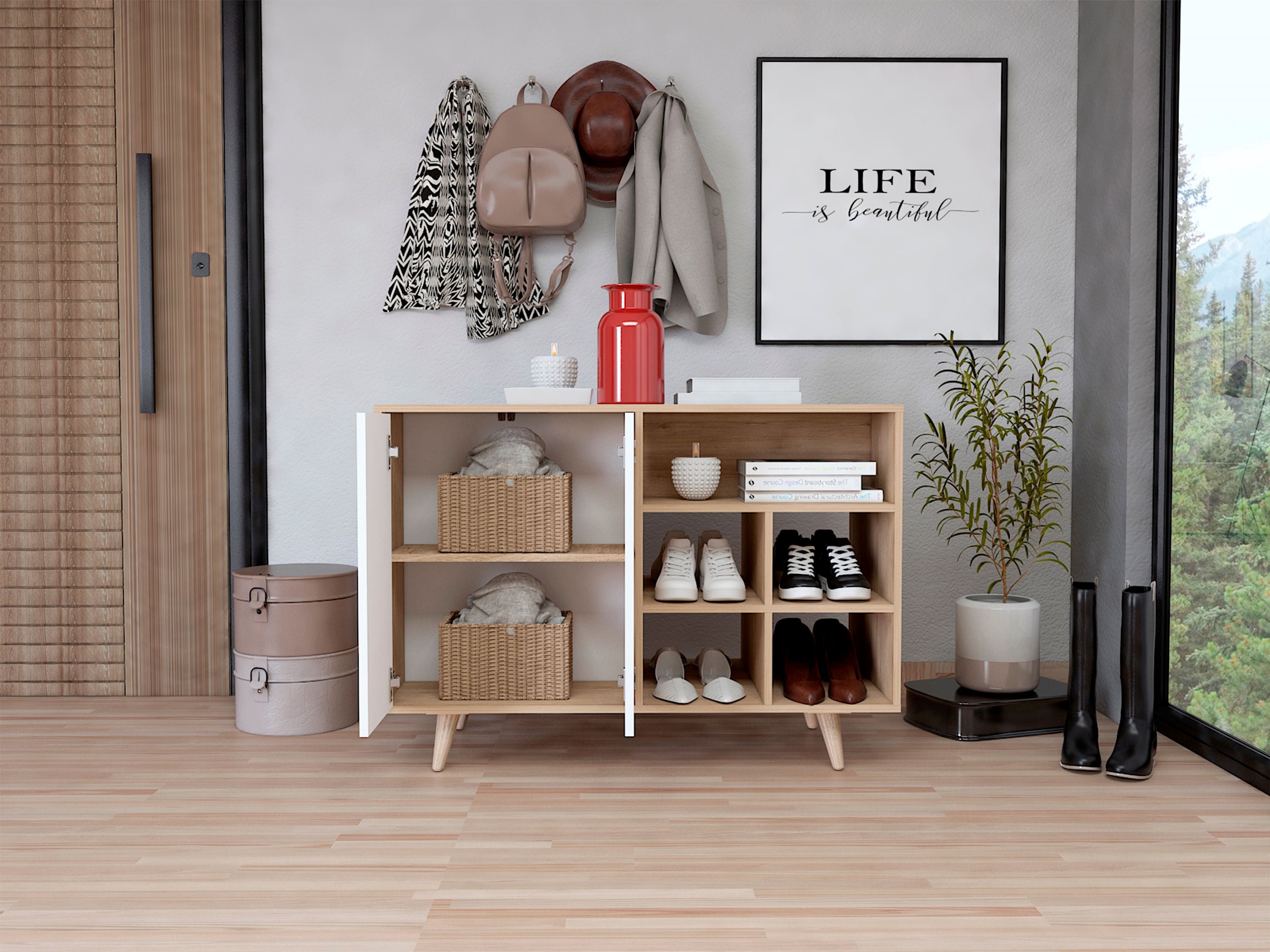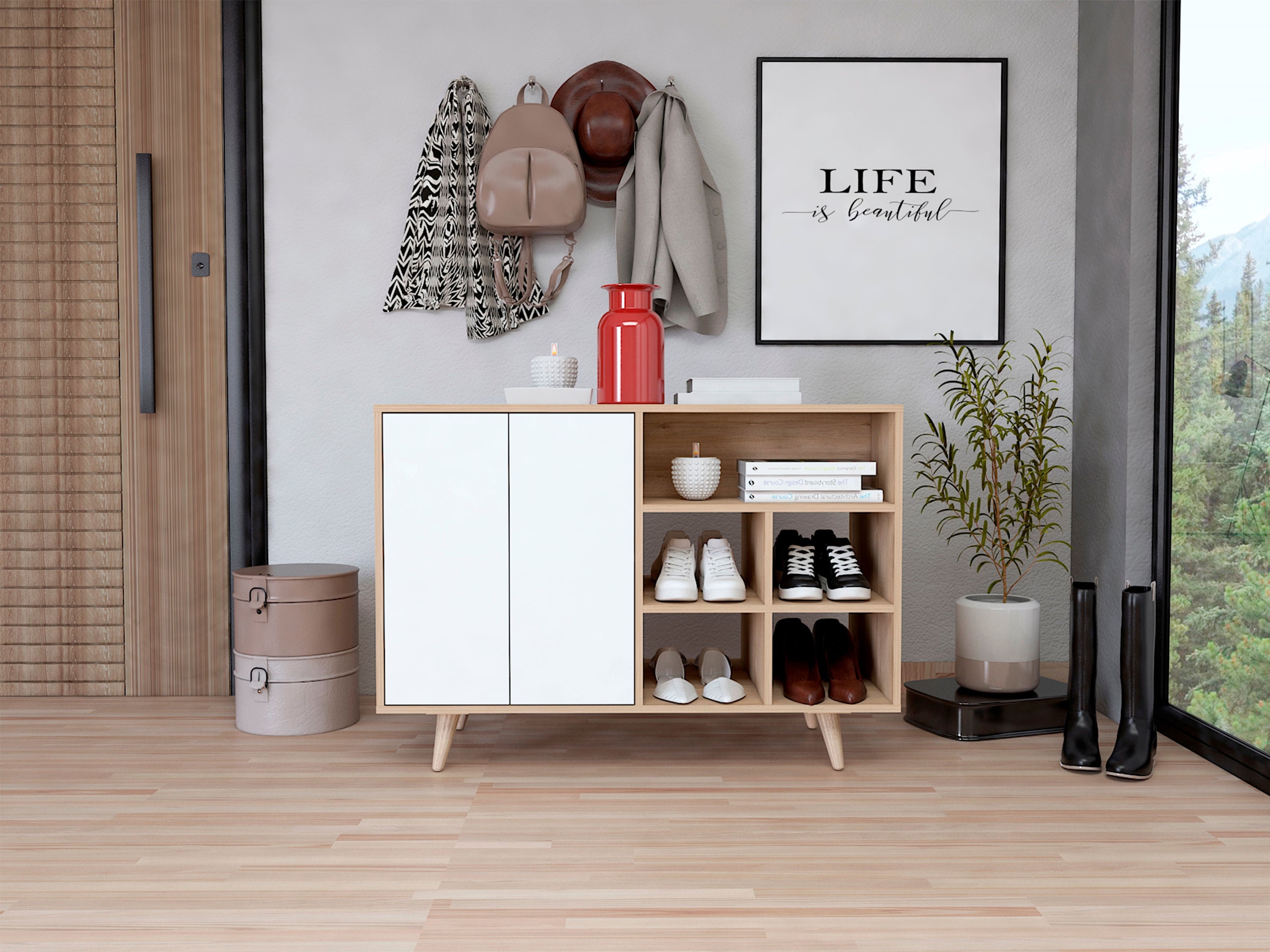 Recibidor con espacio para guardar zapatos y multiples objetos, cuatro puertas con sistema push to open, puede usarse como izquierdo o derecho con medidas de: ANCHO 104 ALTO 74,5 PROFUNDO 50