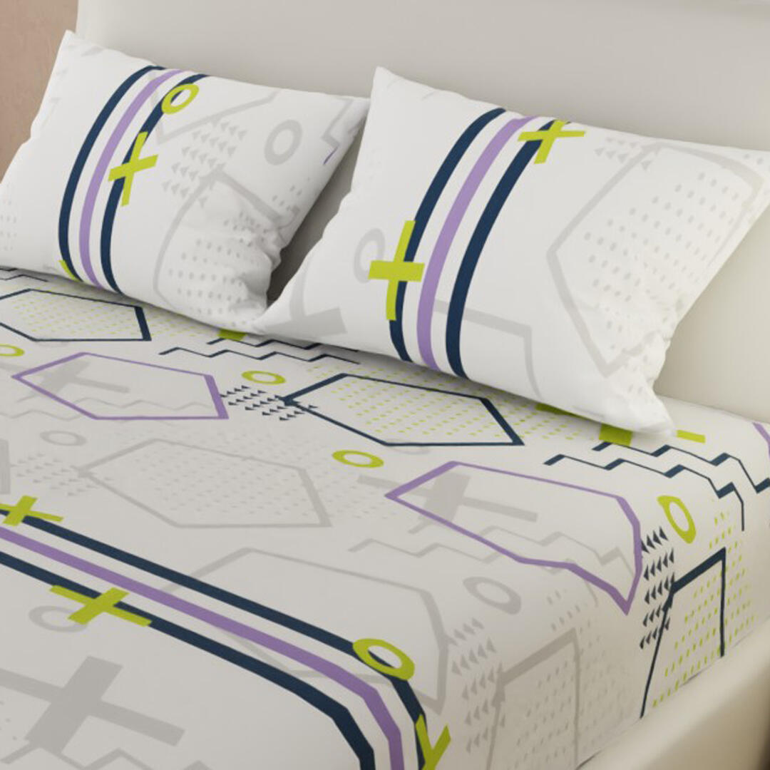 Sábana Ajustable Símbolos Geométricos Y Aritméticos En Neón Fondo Blanco