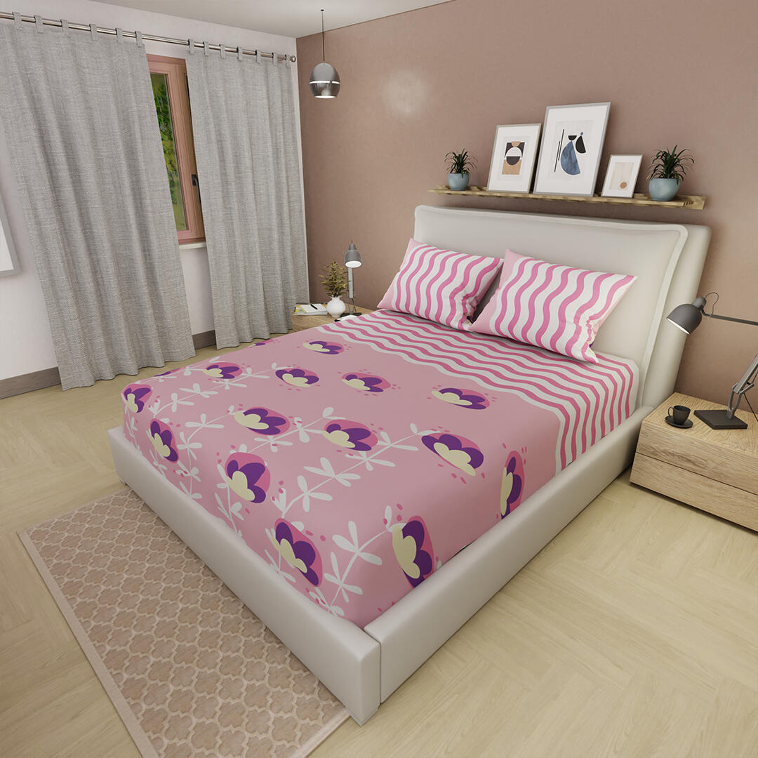 Sabana Ajustable Tulipanes De Verano Fondo Rosa