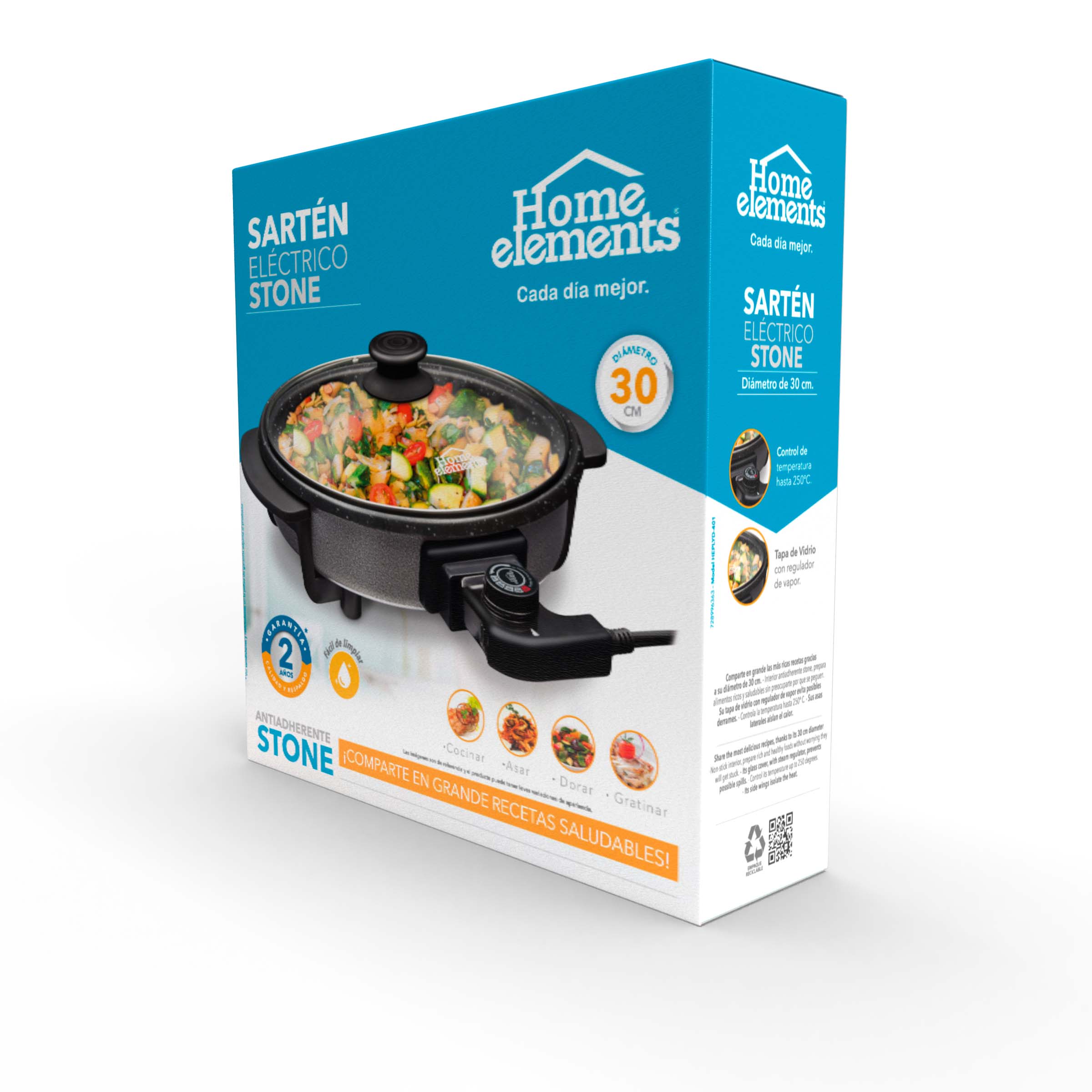 Contenido | Sarten Electrico Redondo 30 Cm Negro Antiadherente Stone Home Elements |