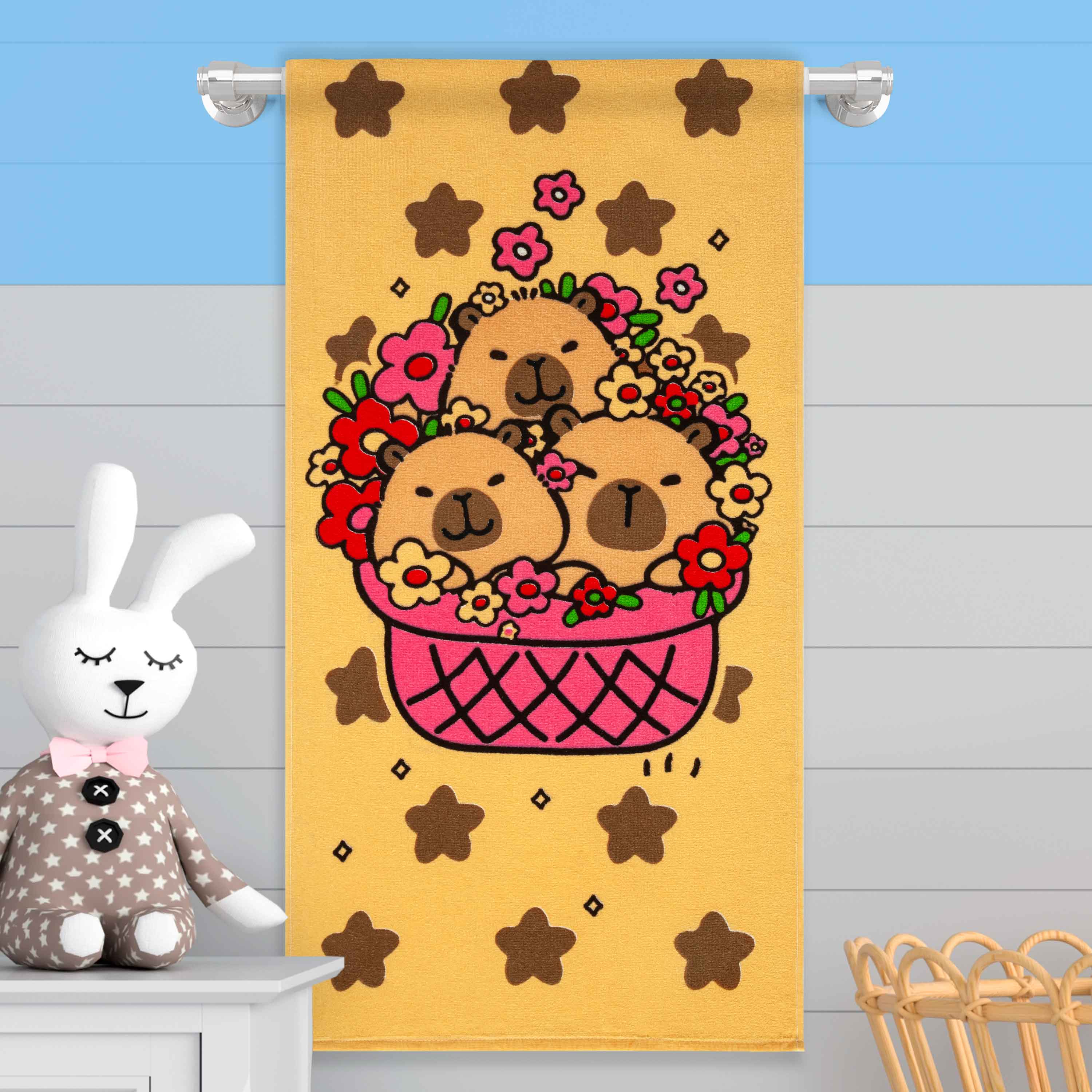 Toalla Infantil 320 Gramos Familia Capibara En Flores